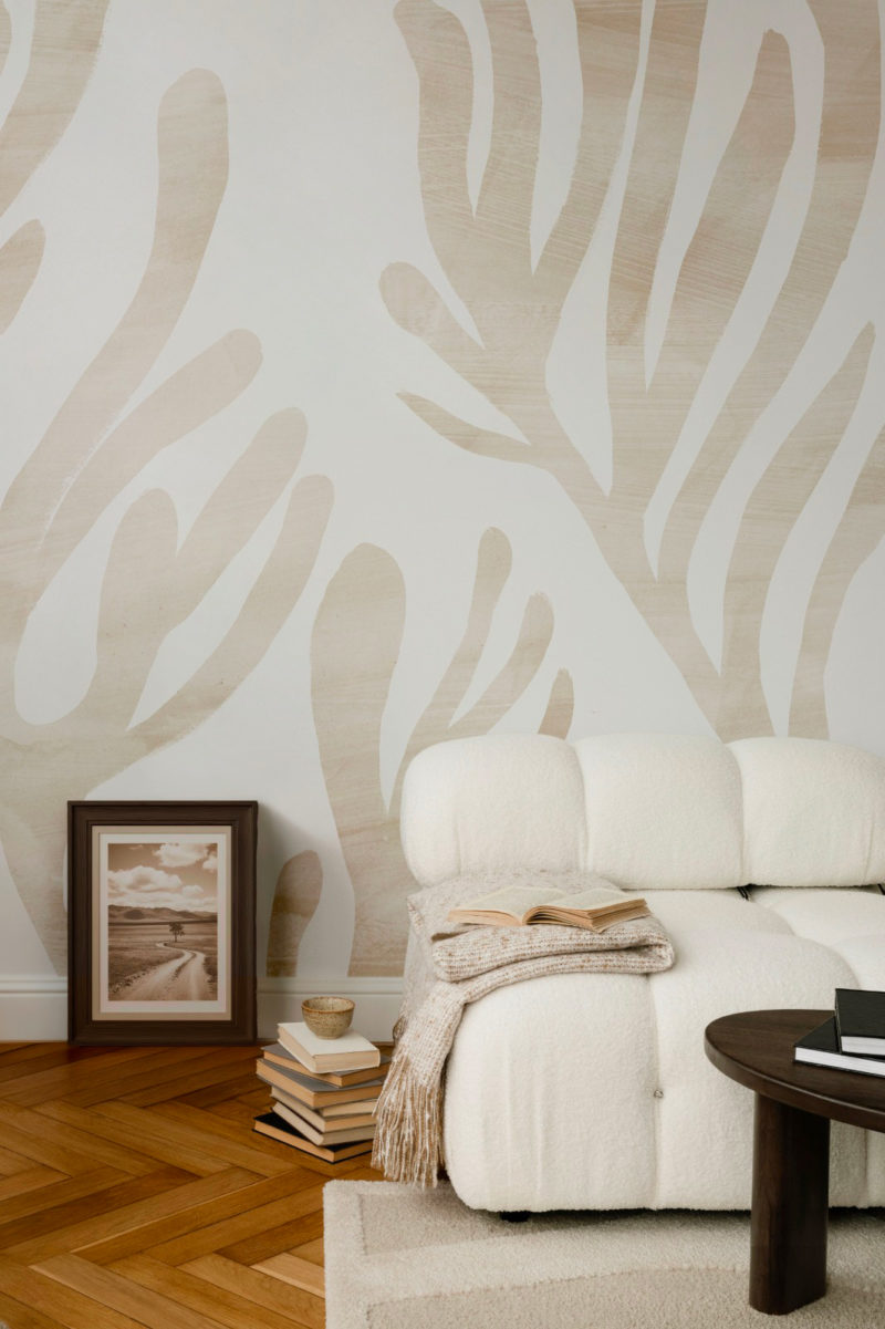 Corail is a graphic panoramic wall mural inspired by the bold visual language of post-Impressionist art, echoing the expressive freedom and organic stylisations associated with Henri Matisse.