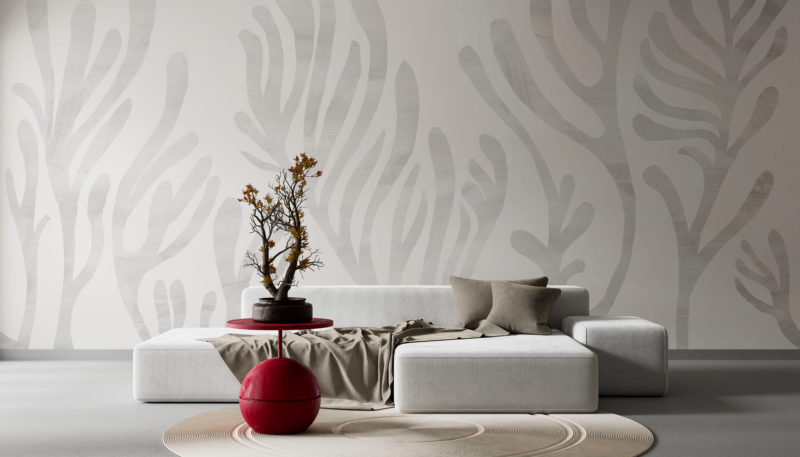 Corail is a graphic panoramic wall mural inspired by the bold visual language of post-Impressionist art, echoing the expressive freedom and organic stylisations associated with Henri Matisse.