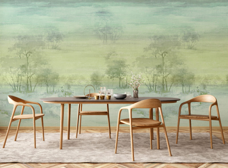 Toscane est un panneau panoramique aérien, romantique et délicat, inspiré de paysages apaisants et de lignes d’horizon douces.